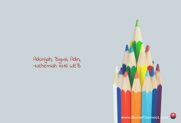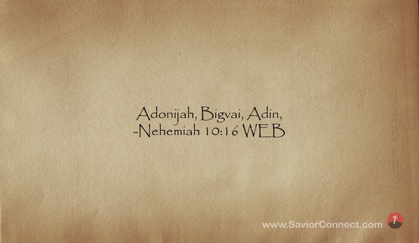 Adonijah, Bigvai, Adin, -Nehemiah 10:16 WEB