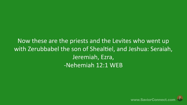 Now these are the priests and the Levites who went up with Zerubbabel the son of Shealtiel, and Jeshua: Seraiah, Jeremiah, Ezra, -Nehemiah 12:1 WEB