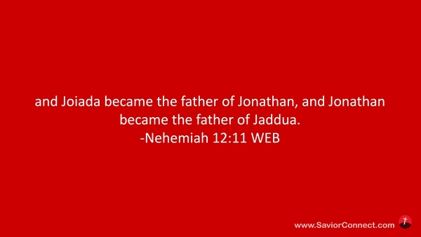 and Joiada became the father of Jonathan, and Jonathan became the father of Jaddua. -Nehemiah 12:11 WEB