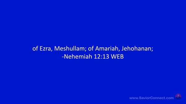 of Ezra, Meshullam; of Amariah, Jehohanan; -Nehemiah 12:13 WEB