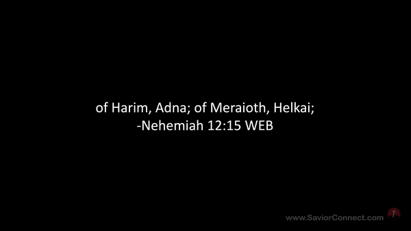 of Harim, Adna; of Meraioth, Helkai; -Nehemiah 12:15 WEB