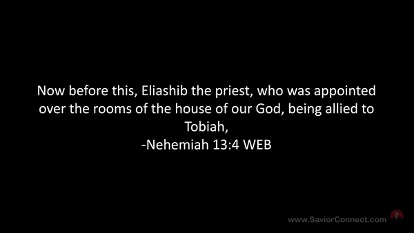Now before this, Eliashib the priest, who was appointed over the rooms of the house of our God, being allied to Tobiah, -Nehemiah 13:4 WEB