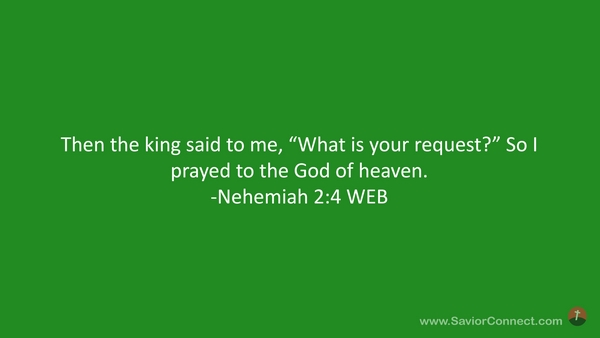 Then the king said to me, “What is your request?” So I prayed to the God of heaven. -Nehemiah 2:4 WEB