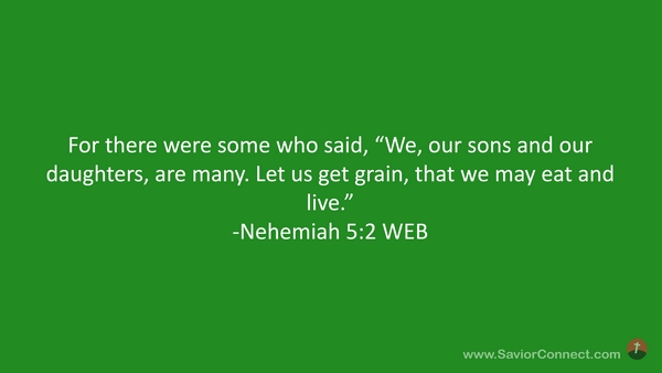 For there were some who said, “We, our sons and our daughters, are many. Let us get grain, that we may eat and live.” -Nehemiah 5:2 WEB