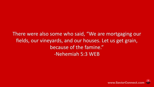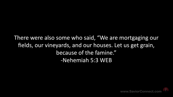 There were also some who said, “We are mortgaging our fields, our vineyards, and our houses. Let us get grain, because of the famine.” -Nehemiah 5:3 WEB