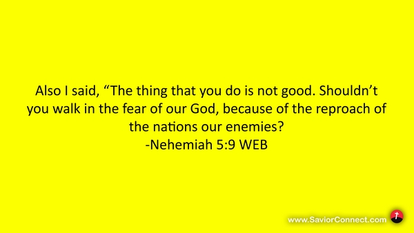 Also I said, “The thing that you do is not good. Shouldn’t you walk in the fear of our God, because of the reproach of the nations our enemies? -Nehemiah 5:9 WEB