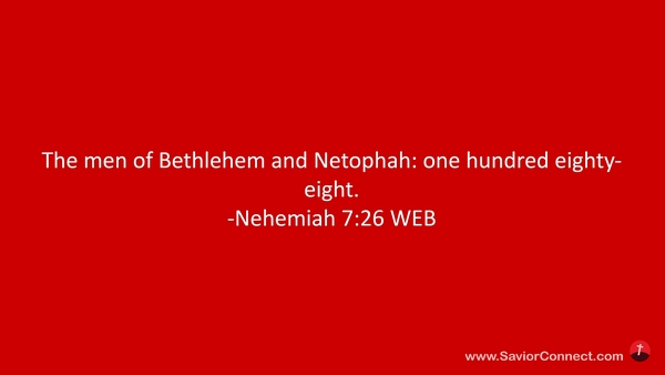 The men of Bethlehem and Netophah: one hundred eighty-eight. -Nehemiah 7:26 WEB