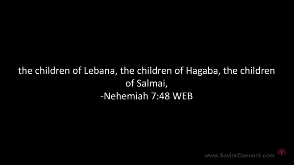 the children of Lebana, the children of Hagaba, the children of Salmai, -Nehemiah 7:48 WEB