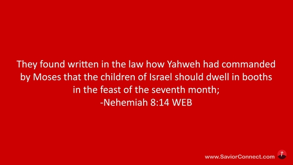 They found written in the law how Yahweh had commanded by Moses that the children of Israel should dwell in booths in the feast of the seventh month; -Nehemiah 8:14 WEB
