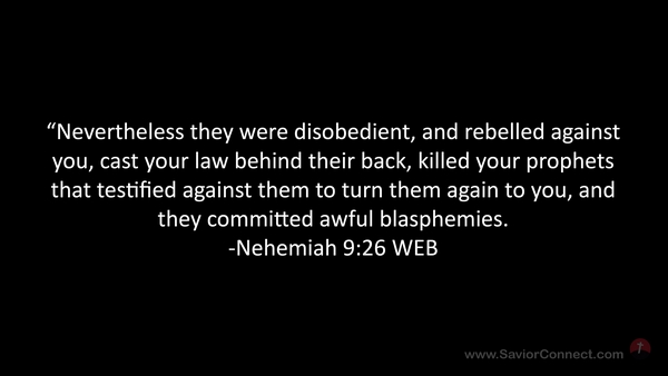 “Nevertheless they were disobedient, and rebelled against you, cast your law behind their back, killed your prophets that testified against them to turn them again to you, and they committed awful blasphemies. -Nehemiah 9:26 WEB