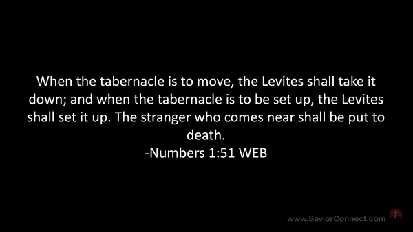 When the tabernacle is to move, the Levites shall take it down; and when the tabernacle is to be set up, the Levites shall set it up. The stranger who comes near shall be put to death. -Numbers 1:51 WEB