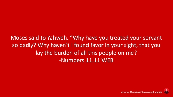 Moses said to Yahweh, “Why have you treated your servant so badly? Why haven’t I found favor in your sight, that you lay the burden of all this people on me? -Numbers 11:11 WEB