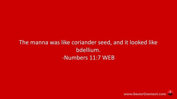 The manna was like coriander seed, and it looked like bdellium. -Numbers 11:7 WEB