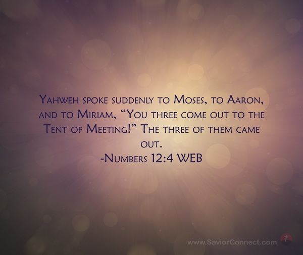 Yahweh spoke suddenly to Moses, to Aaron, and to Miriam, “You three come out to the Tent of Meeting!” The three of them came out. -Numbers 12:4 WEB