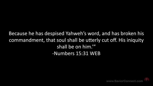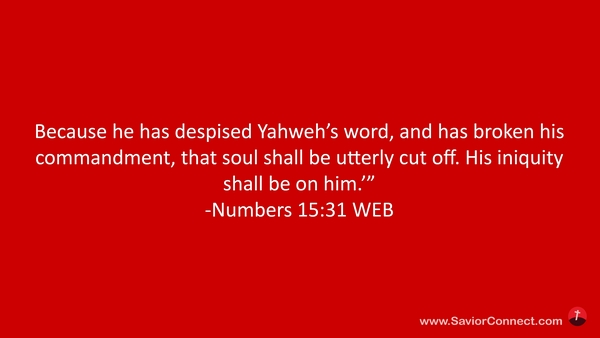 Because he has despised Yahweh’s word, and has broken his commandment, that soul shall be utterly cut off. His iniquity shall be on him.’” -Numbers 15:31 WEB