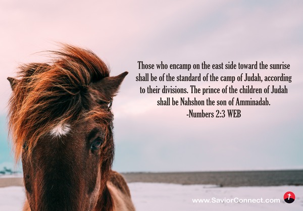 Those who encamp on the east side toward the sunrise shall be of the standard of the camp of Judah, according to their divisions. The prince of the children of Judah shall be Nahshon the son of Amminadab. -Numbers 2:3 WEB