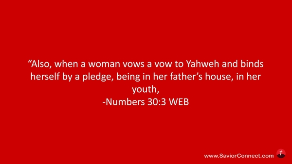 “Also, when a woman vows a vow to Yahweh and binds herself by a pledge, being in her father’s house, in her youth, -Numbers 30:3 WEB