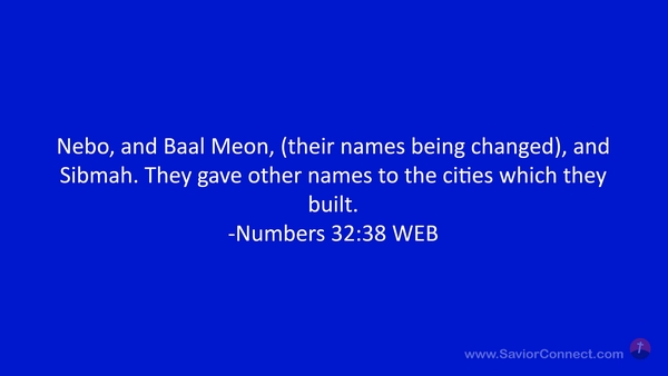 Nebo, and Baal Meon, (their names being changed), and Sibmah. They gave other names to the cities which they built. -Numbers 32:38 WEB