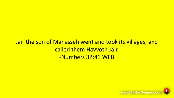 Jair the son of Manasseh went and took its villages, and called them Havvoth Jair. -Numbers 32:41 WEB