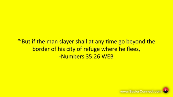 “'But if the man slayer shall at any time go beyond the border of his city of refuge where he flees, -Numbers 35:26 WEB