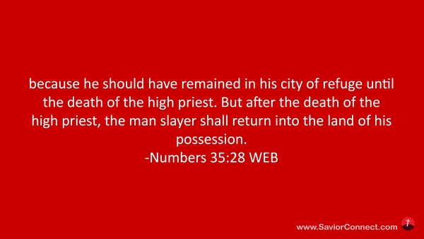 because he should have remained in his city of refuge until the death of the high priest. But after the death of the high priest, the man slayer shall return into the land of his possession. -Numbers 35:28 WEB