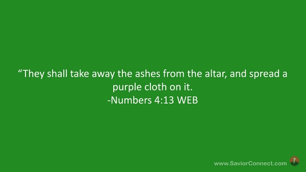 “They shall take away the ashes from the altar, and spread a purple cloth on it. -Numbers 4:13 WEB