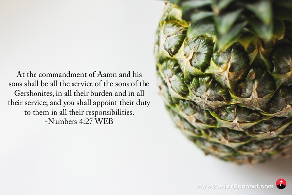 At the commandment of Aaron and his sons shall be all the service of the sons of the Gershonites, in all their burden and in all their service; and you shall appoint their duty to them in all their responsibilities. -Numbers 4:27 WEB