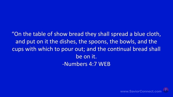 “On the table of show bread they shall spread a blue cloth, and put on it the dishes, the spoons, the bowls, and the cups with which to pour out; and the continual bread shall be on it. -Numbers 4:7 WEB