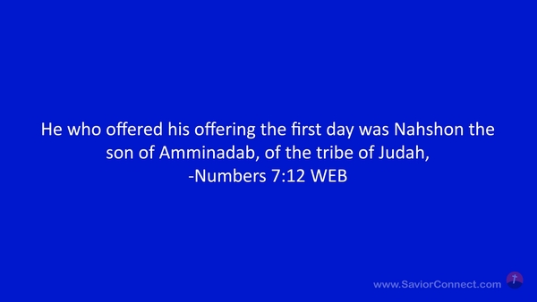 He who offered his offering the first day was Nahshon the son of Amminadab, of the tribe of Judah, -Numbers 7:12 WEB