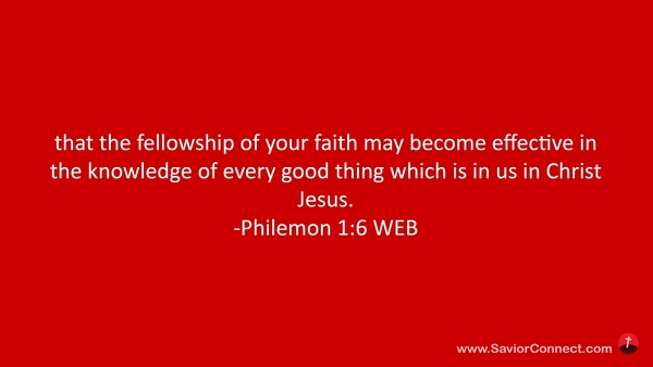 that the fellowship of your faith may become effective in the knowledge of every good thing which is in us in Christ Jesus. -Philemon 1:6 WEB