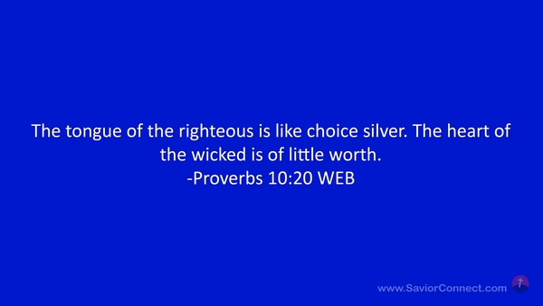 The tongue of the righteous is like choice silver. The heart of the wicked is of little worth. -Proverbs 10:20 WEB
