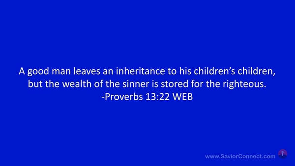 A good man leaves an inheritance to his children’s children, but the wealth of the sinner is stored for the righteous. -Proverbs 13:22 WEB