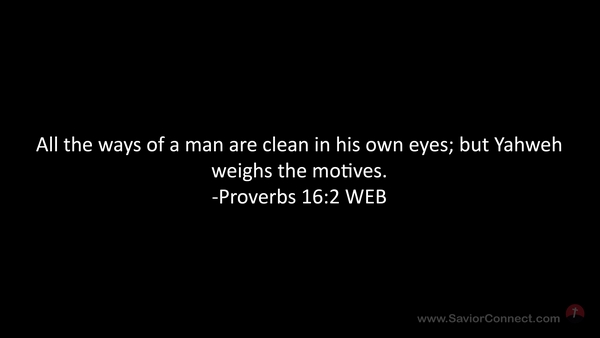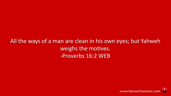 All the ways of a man are clean in his own eyes; but Yahweh weighs the motives. -Proverbs 16:2 WEB