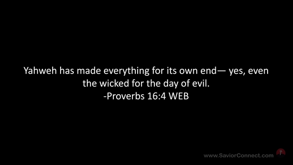 Yahweh has made everything for its own end— yes, even the wicked for the day of evil. -Proverbs 16:4 WEB