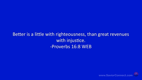 Better is a little with righteousness, than great revenues with injustice. -Proverbs 16:8 WEB