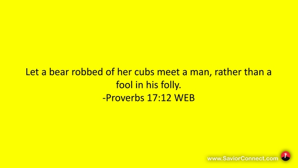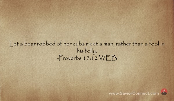 Let a bear robbed of her cubs meet a man, rather than a fool in his folly. -Proverbs 17:12 WEB