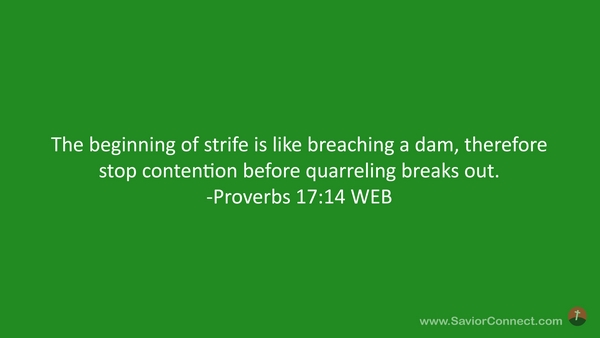 The beginning of strife is like breaching a dam, therefore stop contention before quarreling breaks out. -Proverbs 17:14 WEB