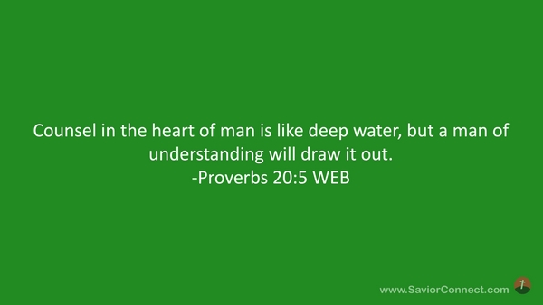 Counsel in the heart of man is like deep water, but a man of understanding will draw it out. -Proverbs 20:5 WEB