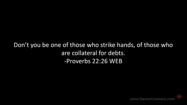 Don’t you be one of those who strike hands, of those who are collateral for debts. -Proverbs 22:26 WEB