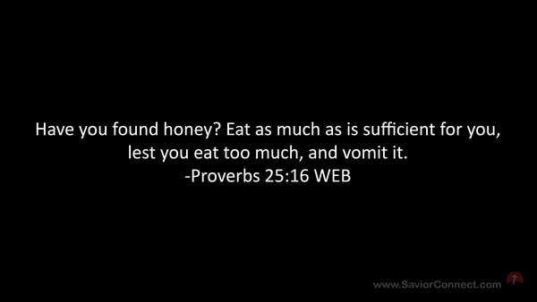 Have you found honey? Eat as much as is sufficient for you, lest you eat too much, and vomit it. -Proverbs 25:16 WEB