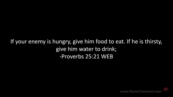 If your enemy is hungry, give him food to eat. If he is thirsty, give him water to drink; -Proverbs 25:21 WEB