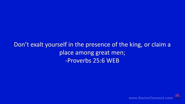 Don’t exalt yourself in the presence of the king, or claim a place among great men; -Proverbs 25:6 WEB