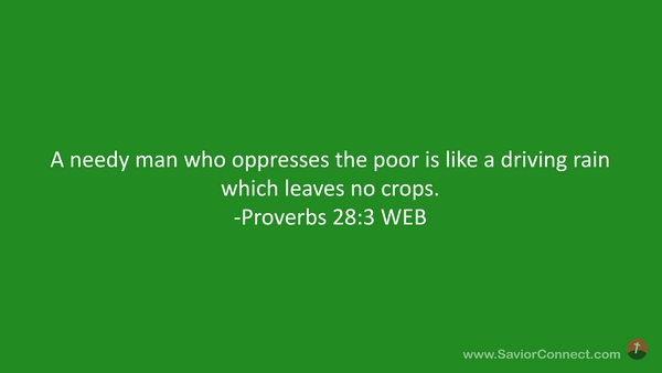 A needy man who oppresses the poor is like a driving rain which leaves no crops. -Proverbs 28:3 WEB