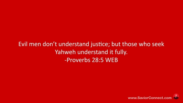 Evil men don’t understand justice; but those who seek Yahweh understand it fully. -Proverbs 28:5 WEB