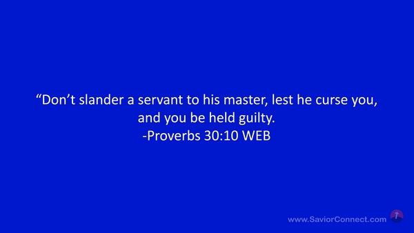 “Don’t slander a servant to his master, lest he curse you, and you be held guilty. -Proverbs 30:10 WEB