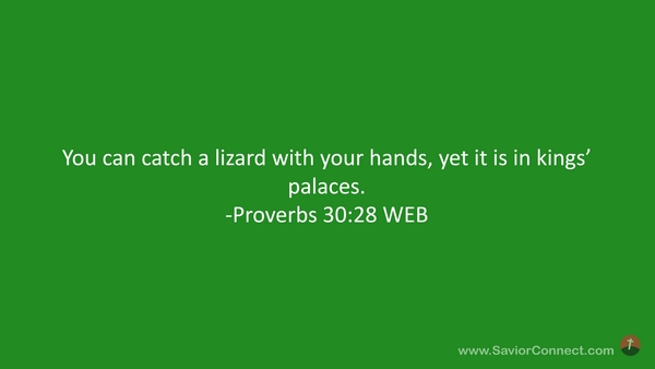 You can catch a lizard with your hands, yet it is in kings’ palaces. -Proverbs 30:28 WEB
