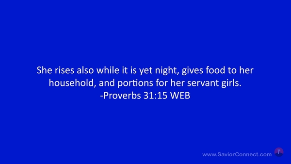 She rises also while it is yet night, gives food to her household, and portions for her servant girls. -Proverbs 31:15 WEB
