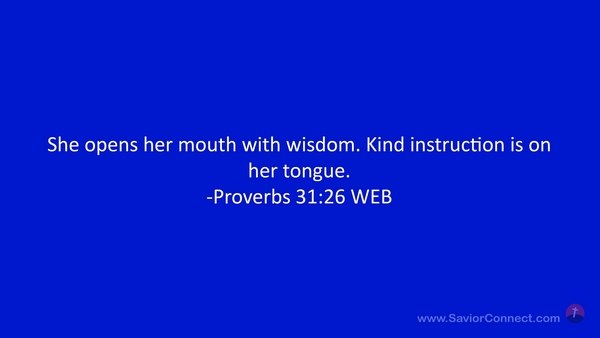 She opens her mouth with wisdom. Kind instruction is on her tongue. -Proverbs 31:26 WEB