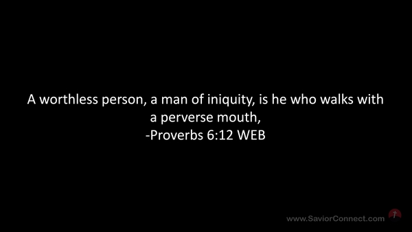 A worthless person, a man of iniquity, is he who walks with a perverse mouth, -Proverbs 6:12 WEB