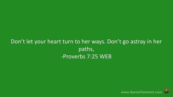 Don’t let your heart turn to her ways. Don’t go astray in her paths, -Proverbs 7:25 WEB